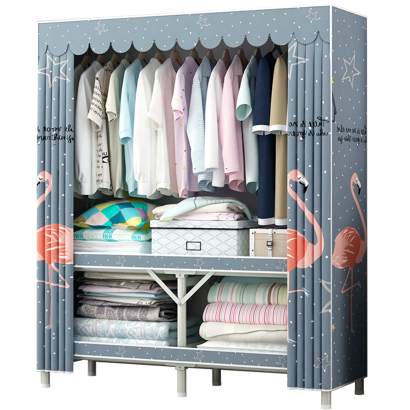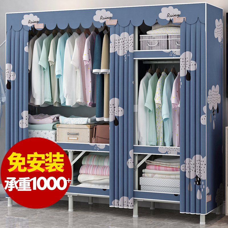 Folding wardrobe installation-free household bedroom simple cloth cabinet Steel pipe thickened and thickened rental room fabric storage cabinet
