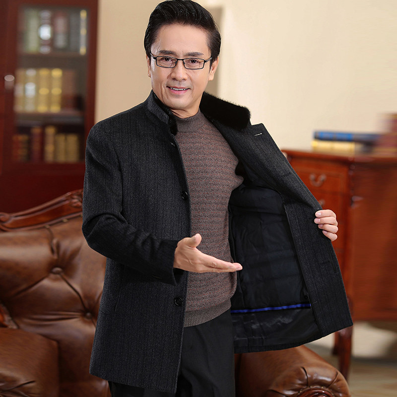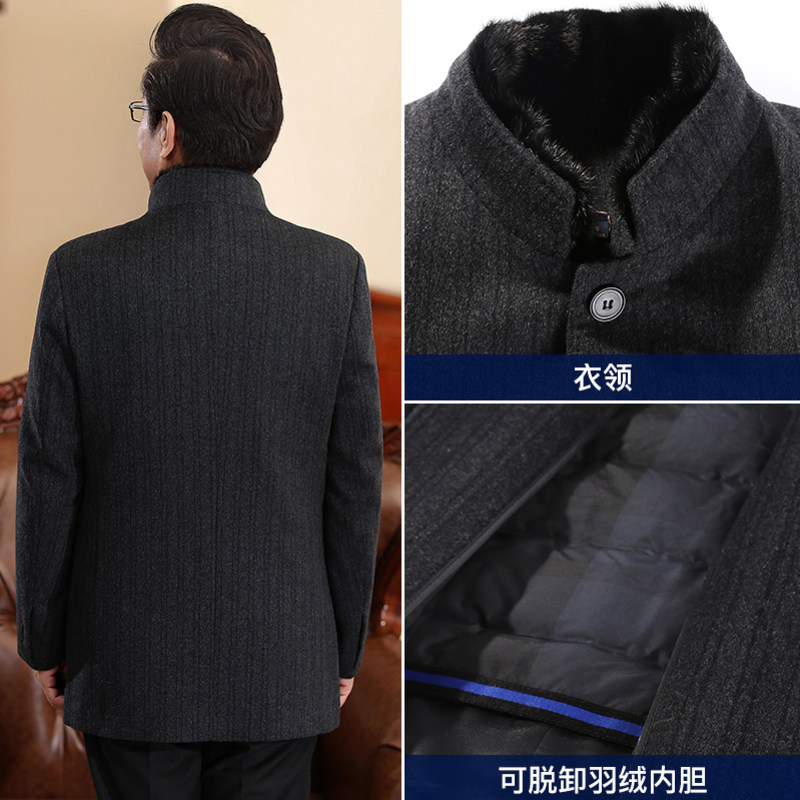 Fort Suo Middle-aged Wool Coat Men's Medium and Long Winter Thick Removable Down Inner Wool Dad Pack