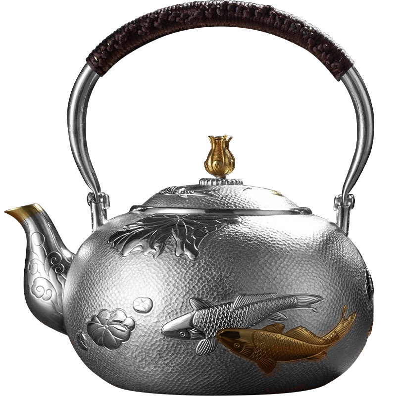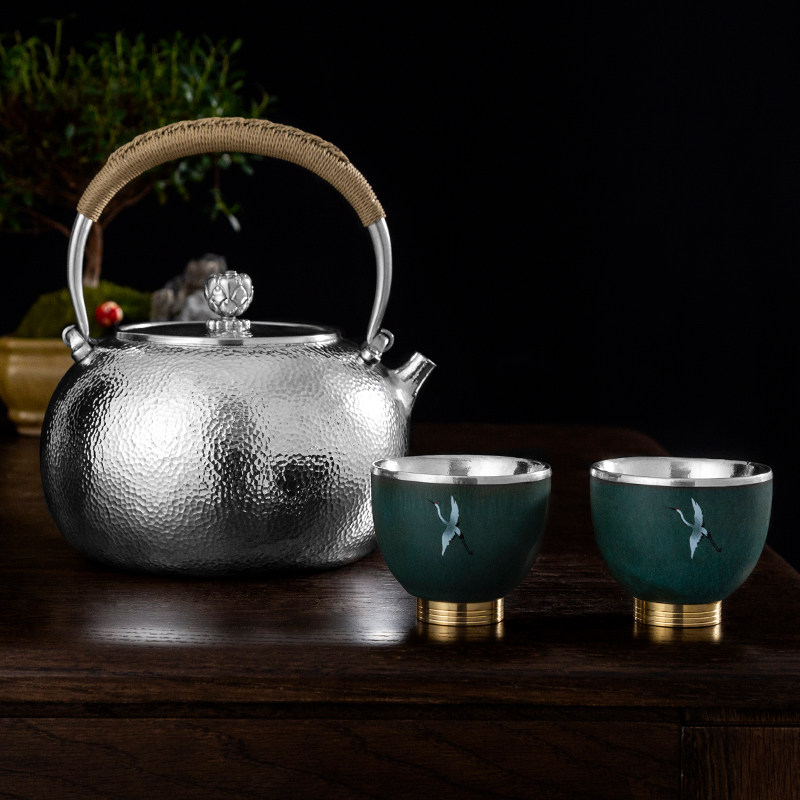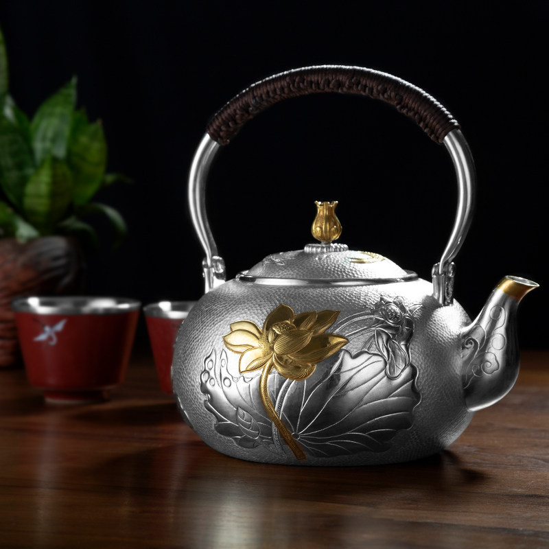 Become Easy Tea Set Pure Silver Pot 999 Flower mens top lifting beams Pot Burning Water Foot Silver Artisan Artisan Artisan Teapot