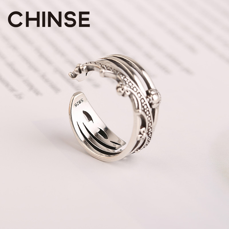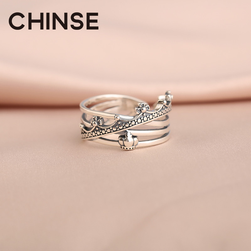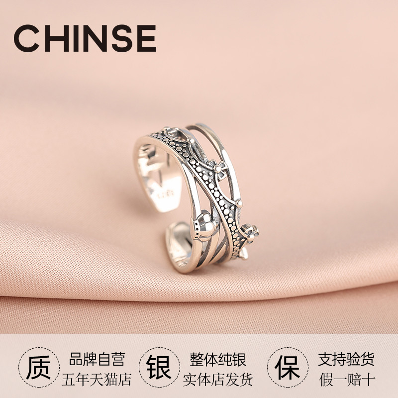 s925 sterling silver crown ring Japanese and Korean version of the personality fashion ring Retro cold wind ins tide domineering female index finger