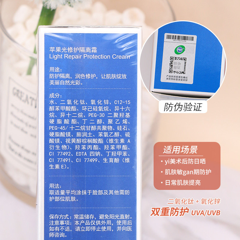 Baoling Apple Light Repair Isolation Cream 35ml Youliya Isolation Milk Brightens Skin Tone Concealer Makeup Before Milk Cosmetics