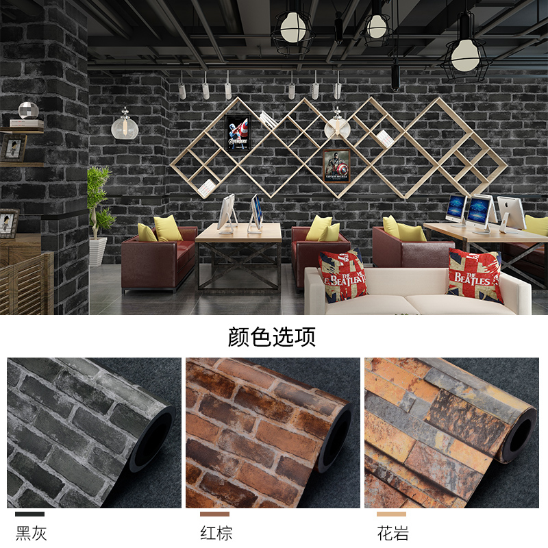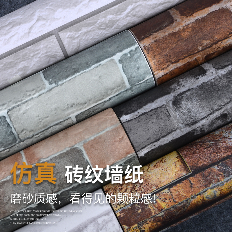 3D three-dimensional thickened retro green and red brick pattern wallpaper Self-adhesive wall decoration background Hotel culture stone sticker wallpaper