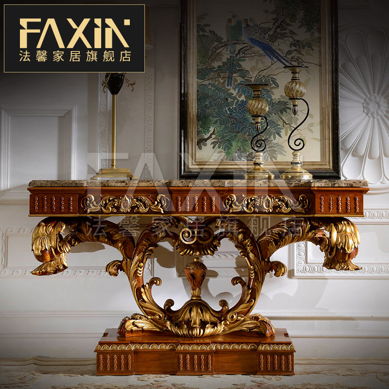 Italian French porch large apartment villa gold leaf edge a few European-style solid wood carved decorative table furniture customization