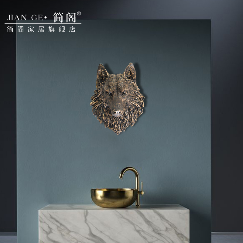 Minimalist modern wolf head wall-mounted swinging piece living room animal head wall decoration Decorations bar clubhouse Fancy Guan Soft Dress