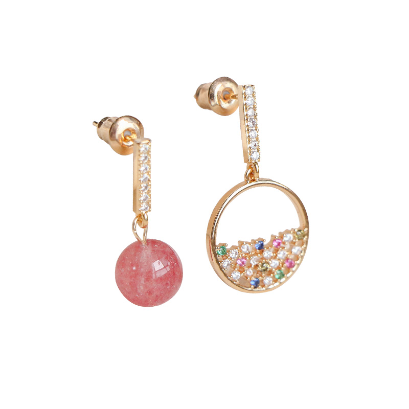Asymmetrical Ear Decoration Natural Crystal Strawberry Crystal Ear Needle Female Zircon RAINBOW NEW 2019 NEMESIS RED PERSONALITY FASHION