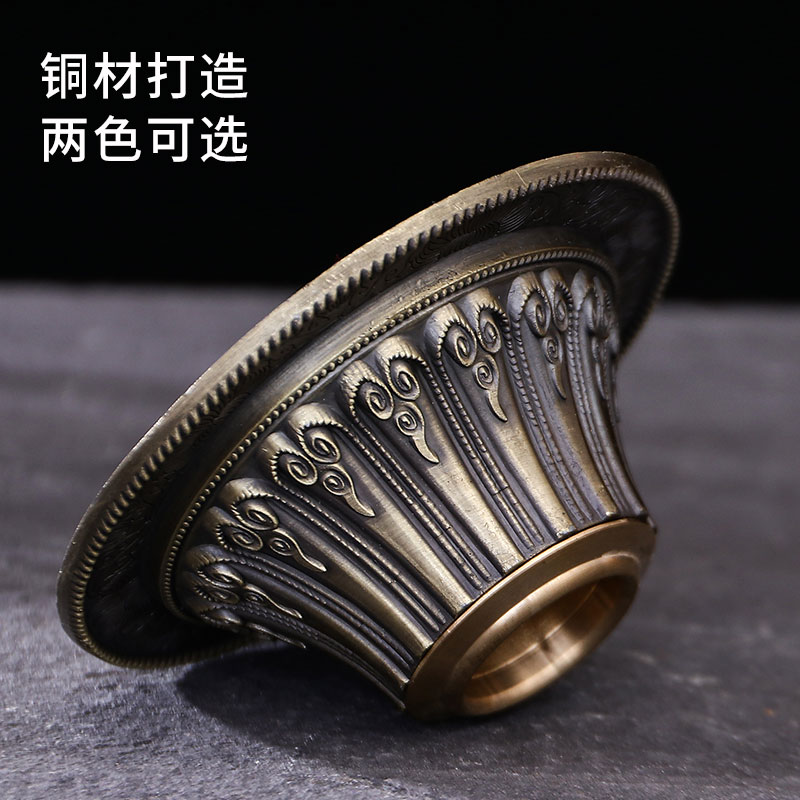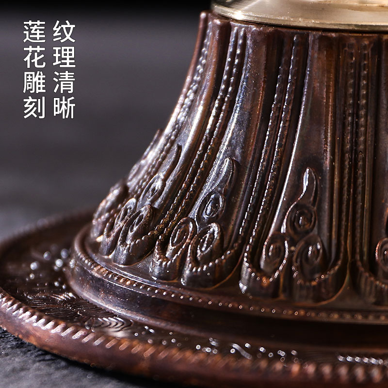 Tibetan esoteric supplies pure copper carved tantric Buddha front eight auspicious lotus base hand-cranked prayer wheel base lotus seat