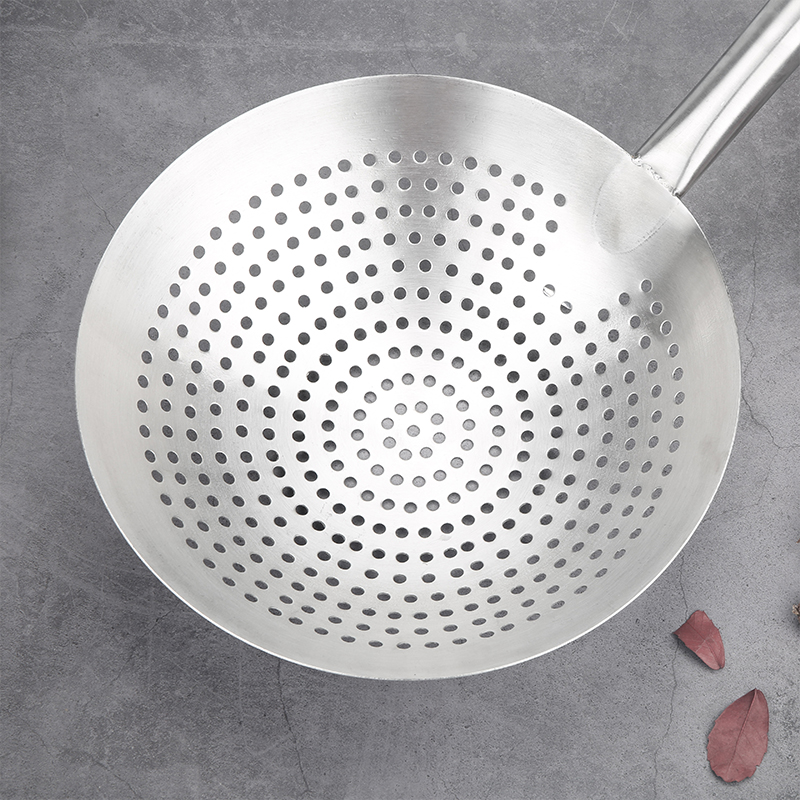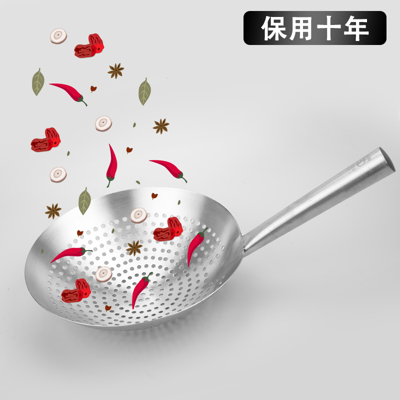 Thickened stainless steel deep-frying large colander Large hot pot oil filter spoon Hotel kitchen oil drum leak Large size filter leak net