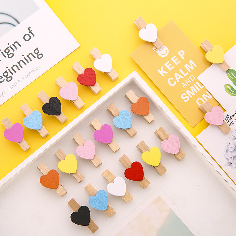 Netred in personality minimalist creativity and fresh girl ultra-cute colorful love and wedding small wooden clamp photo wall decoration wall hemp clamp photo clip