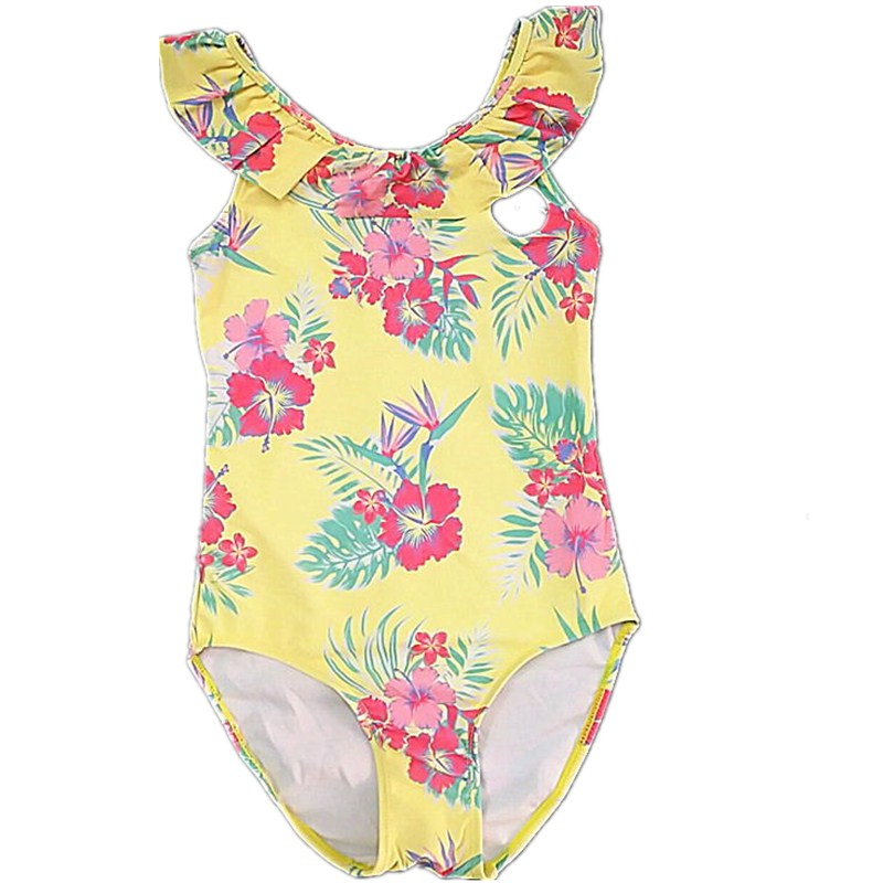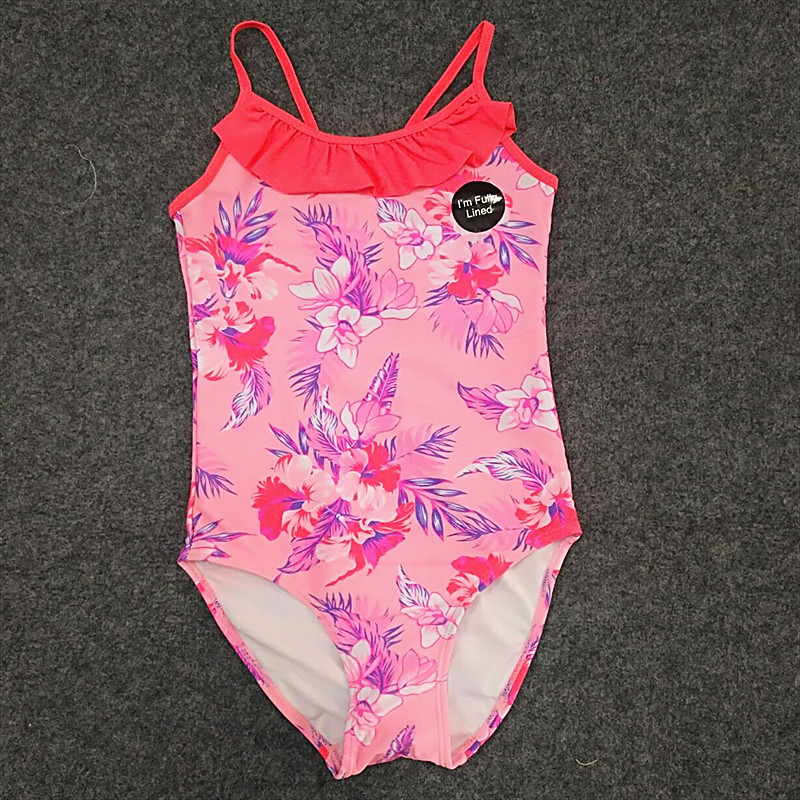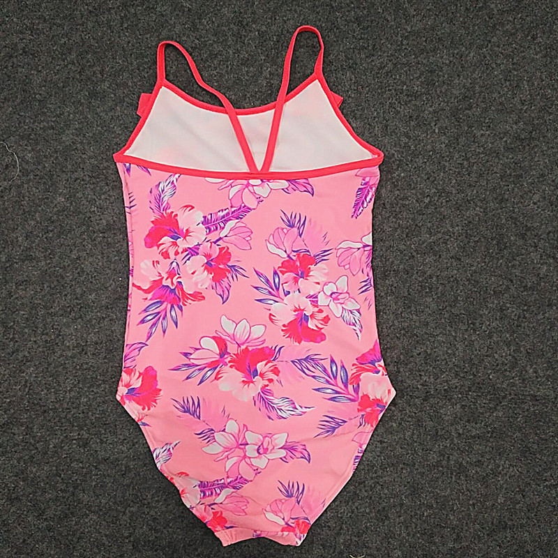 Girls ' one-piece swimsuit triangle section medium large virgin girl digital print cute ruffle student training swimsuit