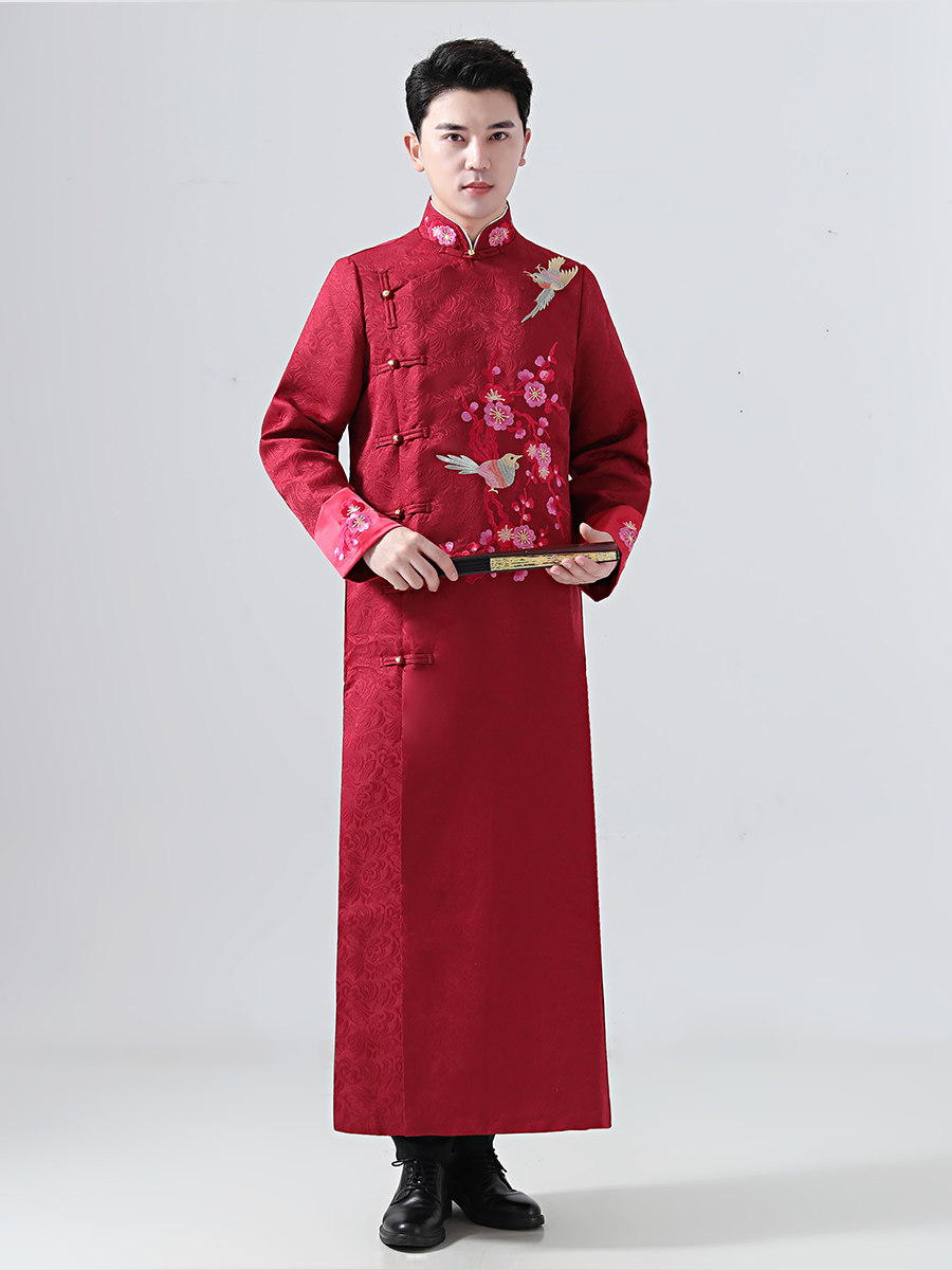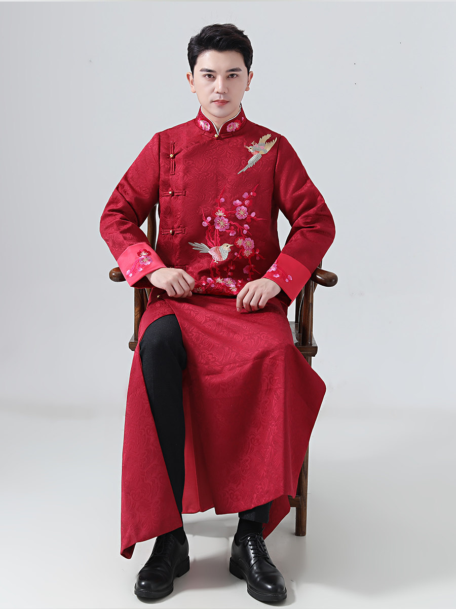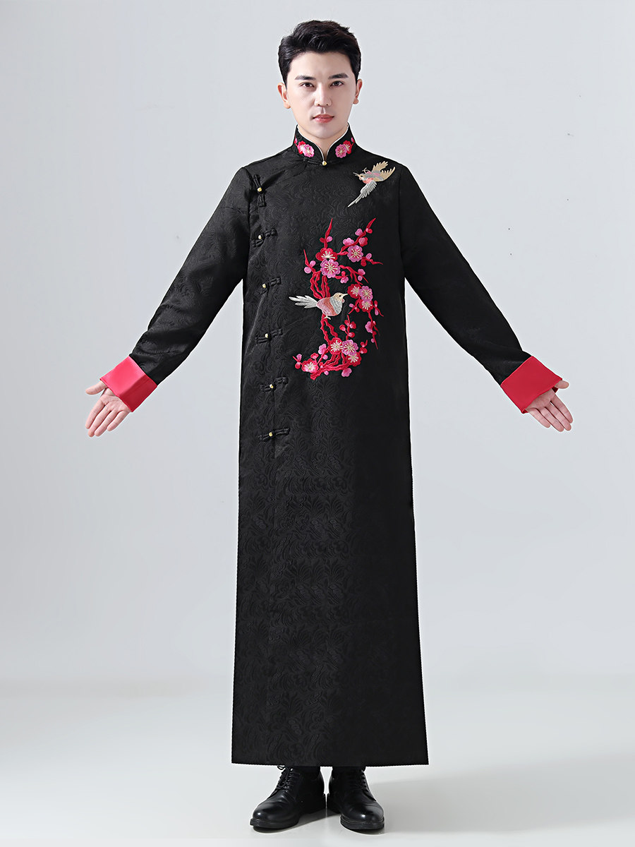 Middle-and-long version of the Liberal Republic's Long-shirt Ming System for Men and Women's Autumn and Winter Slanted Brokenness and Costume Rework Embroidered