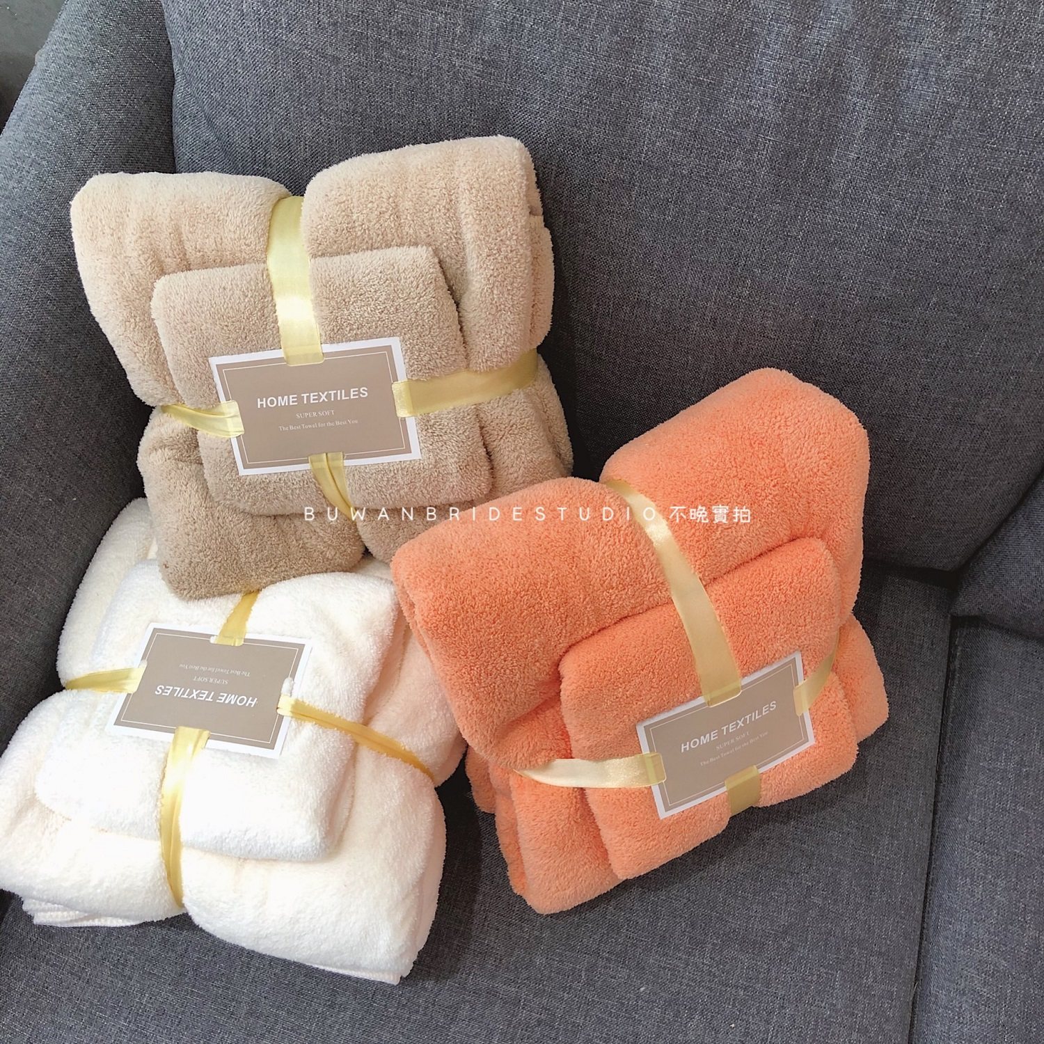 Foreign trade island country) Export two-piece set without fluorescent agent Coral fluff towel bath towel super soft than chest soft