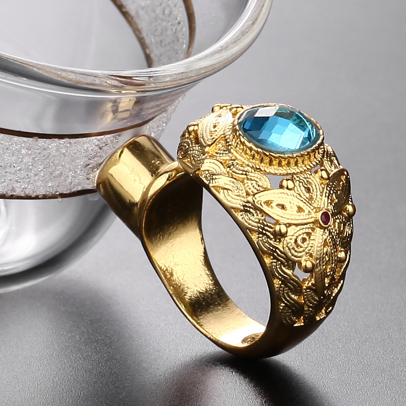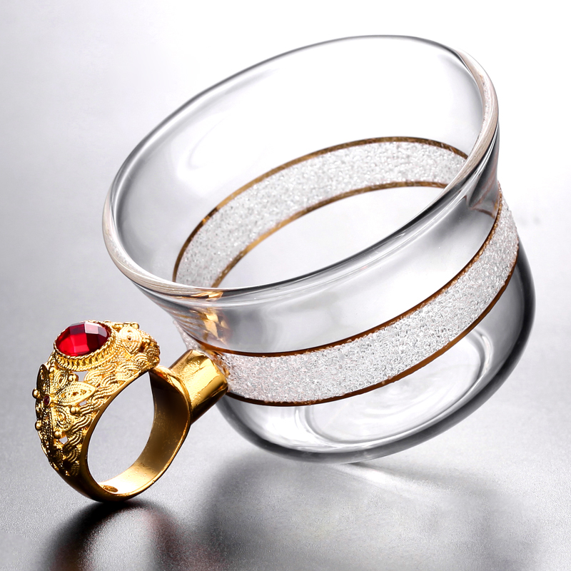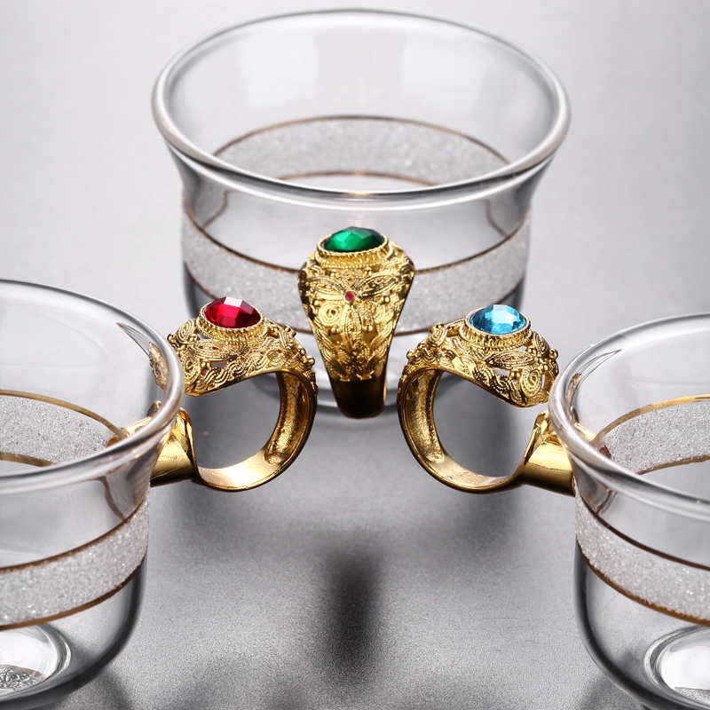 Jewelry ring with gold crystal cup-green diamond Jewelry ring with gold crystal cup-blue diamond Jewelry ring with gold crystal cup-red diamond