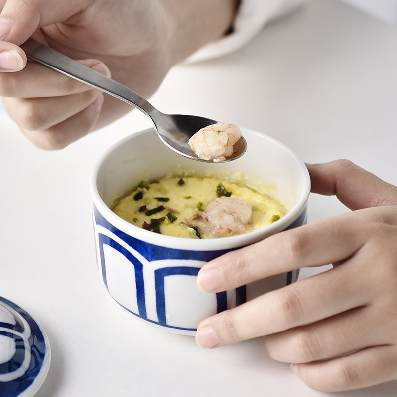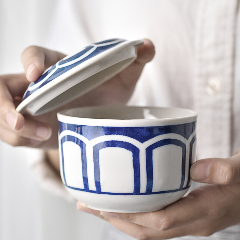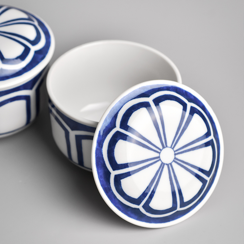 Japan imported Posami-fired indigo ceramic steamed egg stew Japanese-style soup home with lid bird's nest bowl