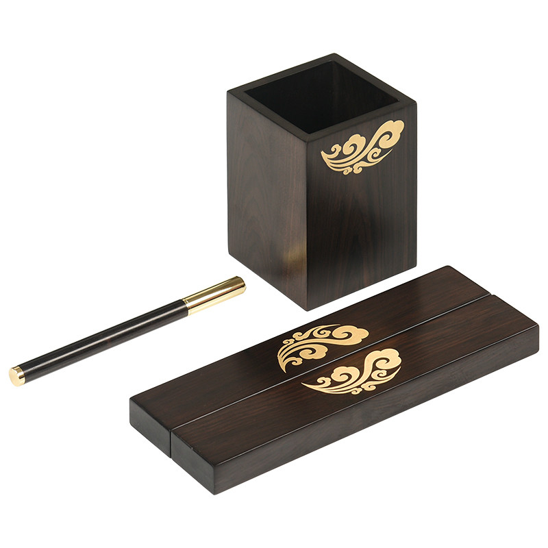 Custom logo lettering red wood purple sandalwood pen holder town ruler signature pen office gift box set stationery paperweight
