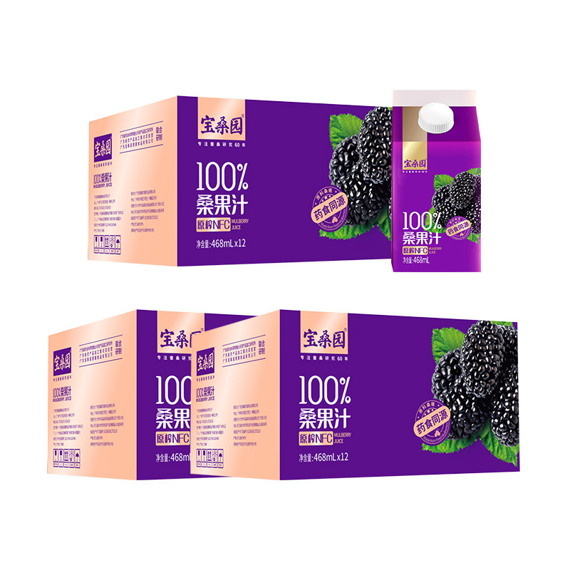 Guangdong Academy of Agricultural Sciences Mulberry Juice Treasure Mulberry Garden Mulberry Fruit NFC Pure Juice 3 Boxes 468ml Fresh Squeezed Mulberry Juice Gift Box Dress