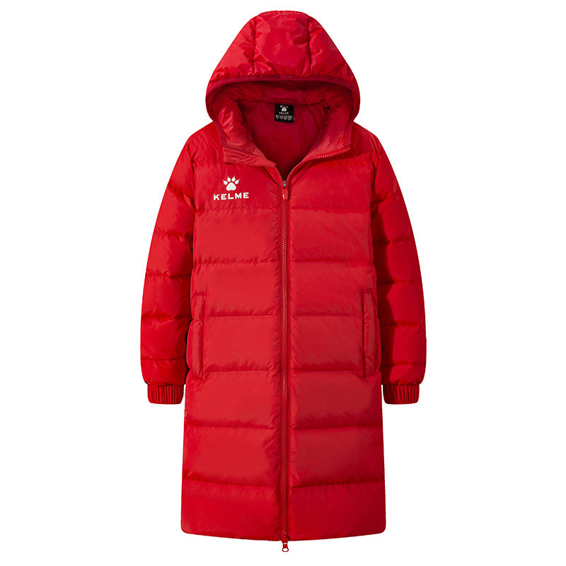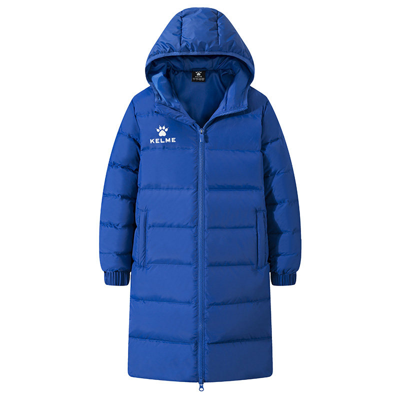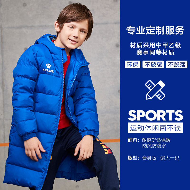 kelme winter children's sports down jacket men's and women's hooded warm long version football training jacket