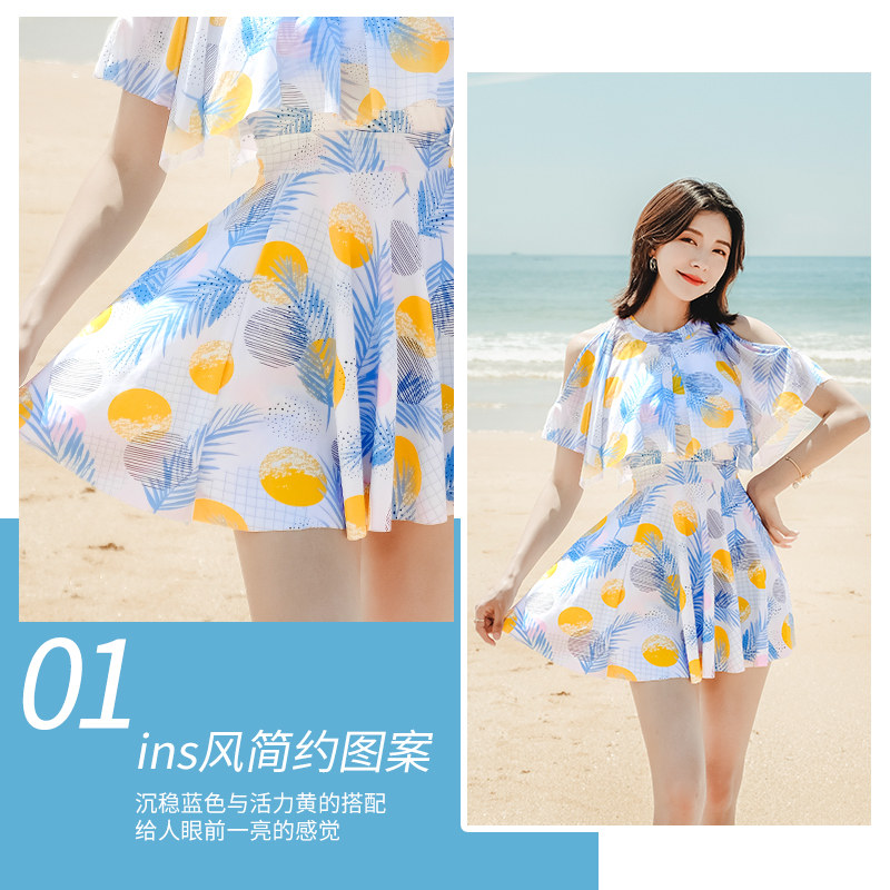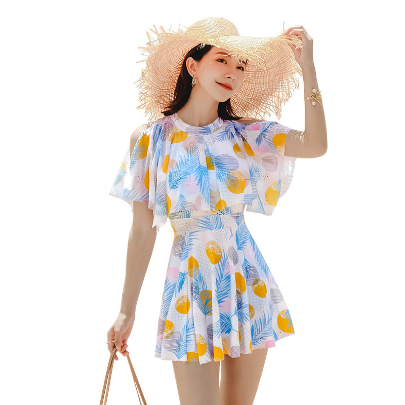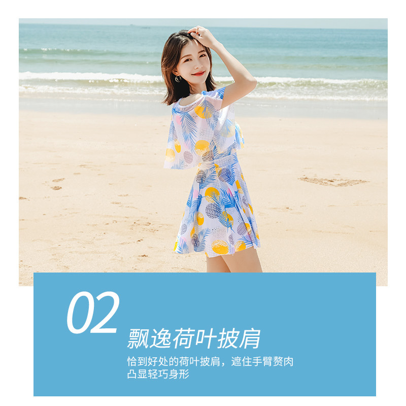 Swimsuit Women's 2020 New Fairy Fan Conservative One-Piece Covered Belly Slim Sexy Large Size Korean Ins Style Swimwear