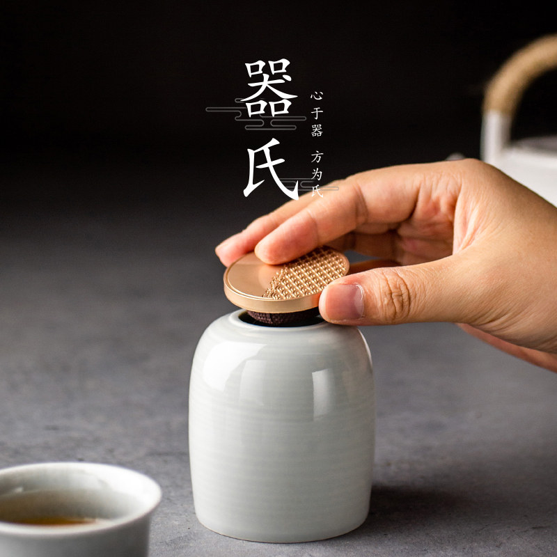 Instrumental Mini Tea Leaves Jar Ceramic Seal Tank Portable Travel Trumpet Storage Tank Creative Tea Bin Jar Household