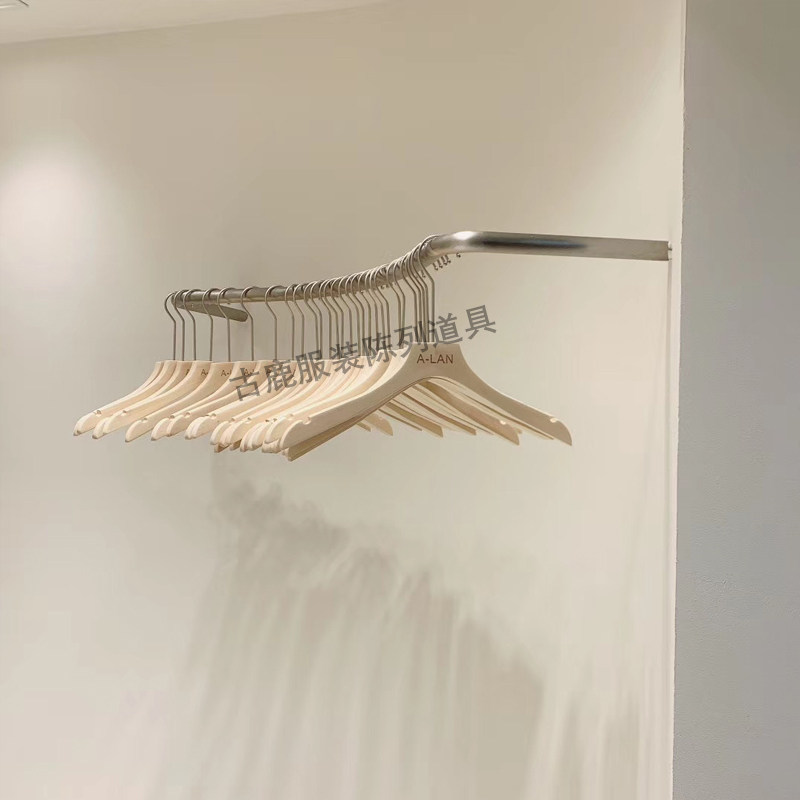 Clothing Shop Show Rack Upper Wall Hanging Clothes Rod Wall-mounted Display Women's Clothing Store Shelves Gold Stainless Steel Clothes Racks