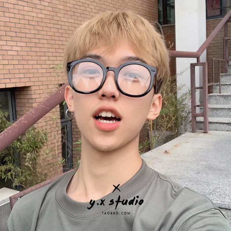 Black frame round eyeglass frame male makeup artifact shaking sound network red tide people with the same can be equipped with myopia flat eyeglass frame female