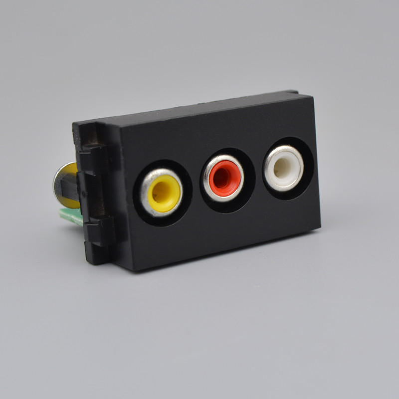 Black 128 type solder-free AV red, yellow and white three lotus head audio and video socket RCA socket 86 panel supporting module