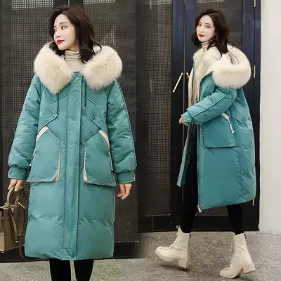 Down cotton clothes women's medium and long version of the Korean version loose over the knee winter 2020 new big wool collar cotton coat fashion quilted jacket