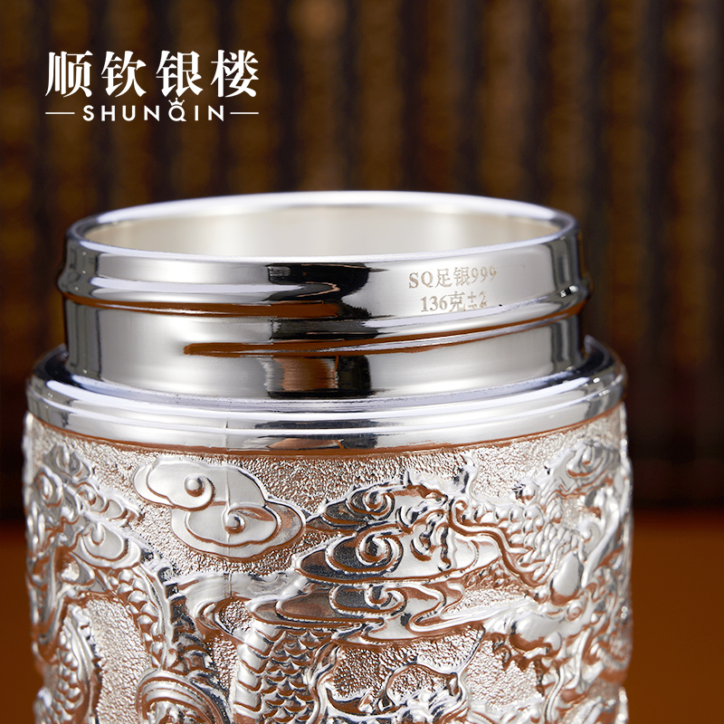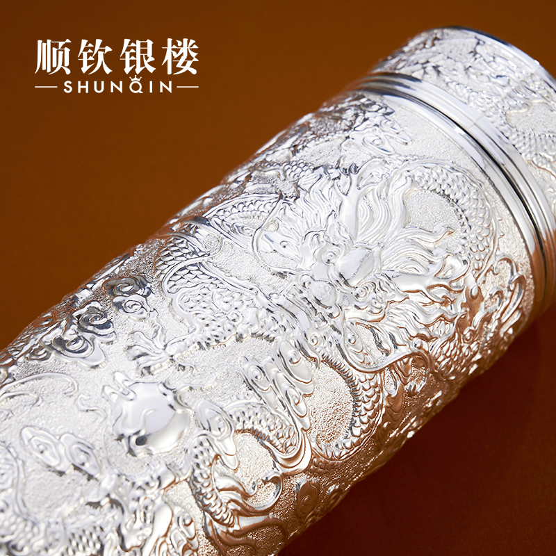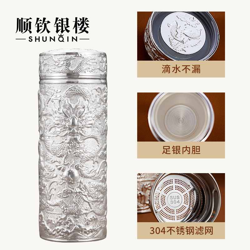 Shunqin Silver Tower 999 foot silver Kowloon silver water cup Sterling silver liner Thermos cup men's tea portable high-end gift