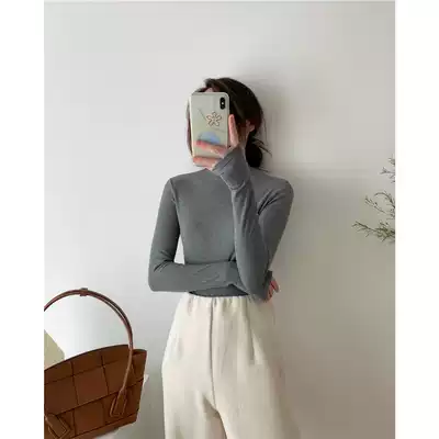 ICTS season over the border dark light gray two colors into the inside fluff basic semi-turtleneck bottoming sweater