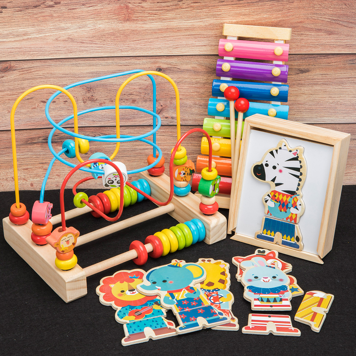Animal big around the beads Big around the beads MM three-dimensional animal puzzle small tower Small around the beads Eight-tone piano (send piano spectrum) Large around the beads Green train travel drum Large around the beads Wooden early education classification