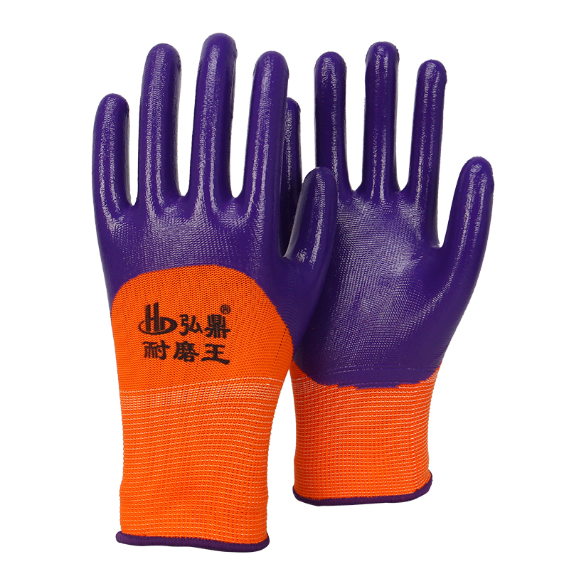 Hongding dipped glue hanging rubber labor insurance gloves nitrile wear-resistant king nylon hanging glue anti-oil and anti-slip work labor insurance gloves