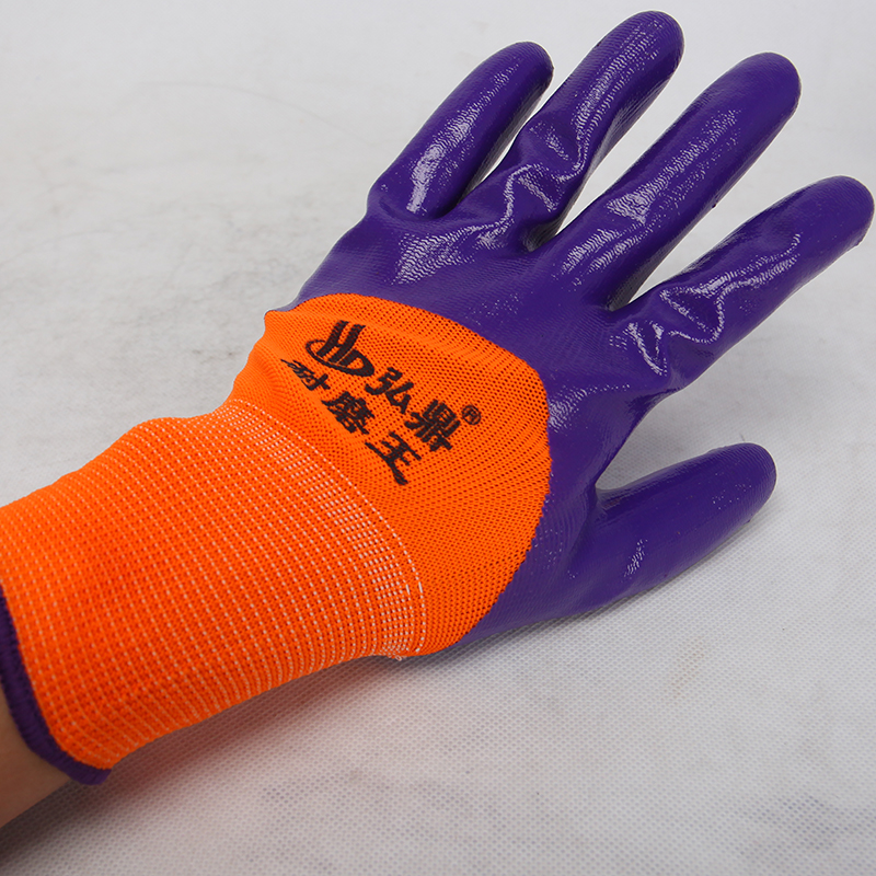 Hongding wear-resistant king orange yarn purple nitrile 12 pairs Hongding wear-resistant king orange yarn purple nitrile 24 double handles N538 orange yarn purple half-hanging nitrile (12 double handles N538 orange yarn purple half-hanging nitrile (2