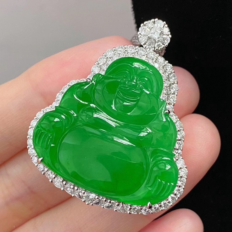 Natural ice jade green Guanyin landscape brand Buddha fair and safe brand gourd men's and women's jade pendant necklace