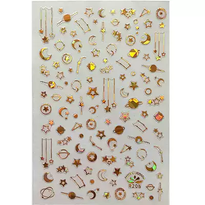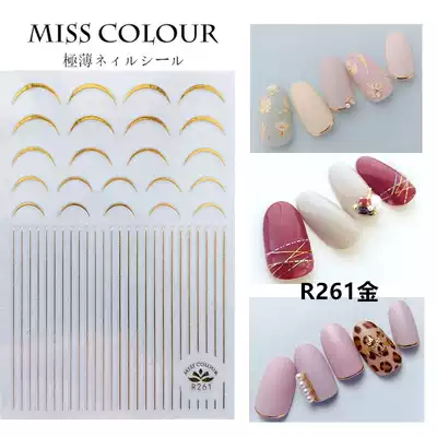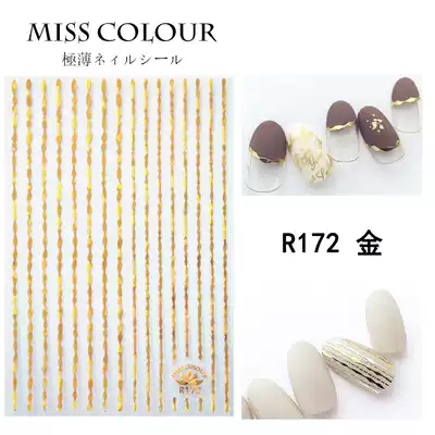Net red 3D waterproof ultra-thin nail polish glue nail sticker metal gold and silver black chain line arc star center rounded