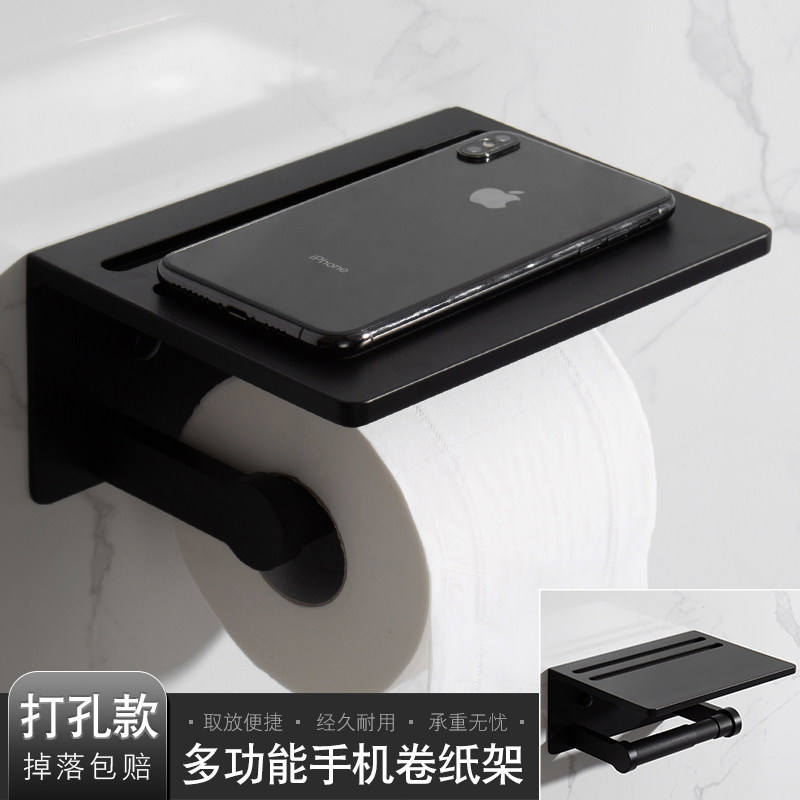Wall-mounted paper towel rack Powder room roll toilet paper box Space aluminum toilet paper rack Let go phone shelf Toilet toilet paper rack