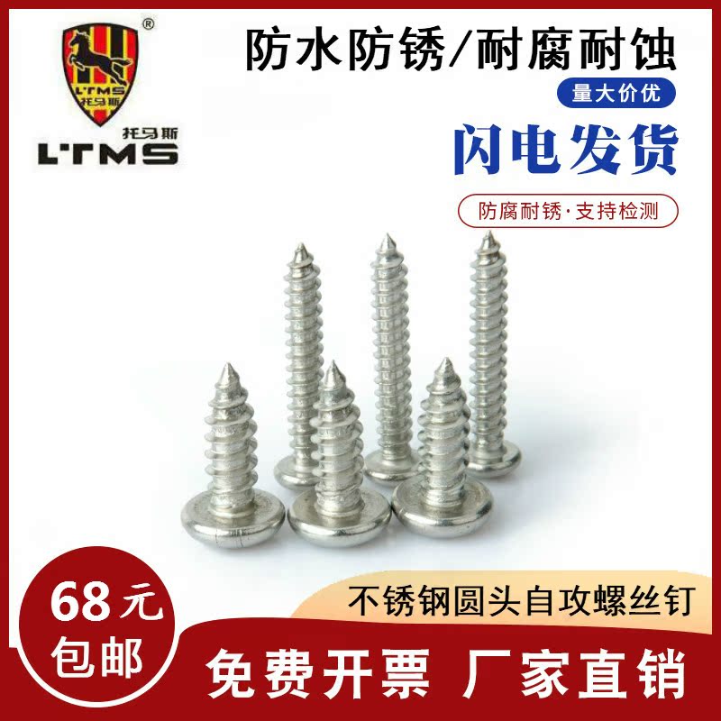 M4 series 304 stainless steel round head cross self-tapping screws Pan head self-tapping wood screws M4*8-70 GB845