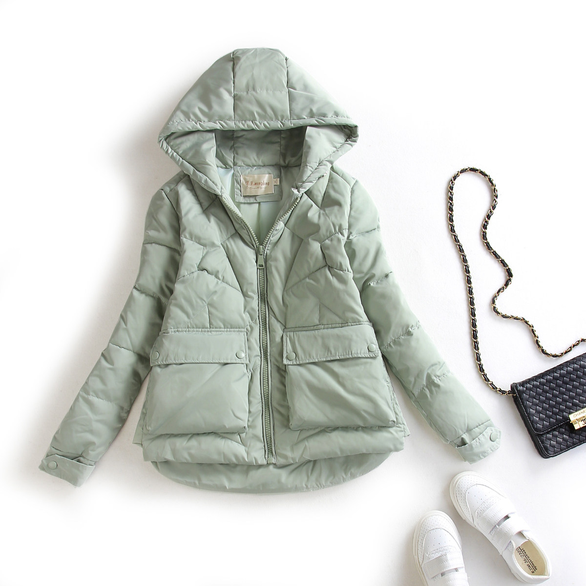 Europe Station 2021 New Pink Cotton Clothing Women Winter Short Korean version Conspiculy Hat Down Cotton 100 Lap Cotton Clot Jacket