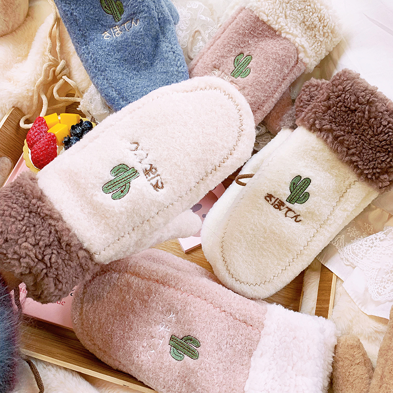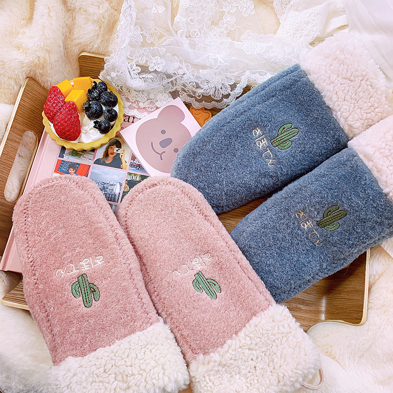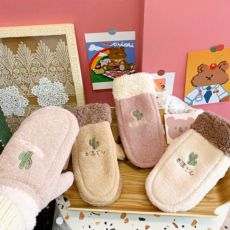 Winter plus velvet thickened warm cold and windproof gloves men and women cute cactus couple hanging neck cotton gloves woolen