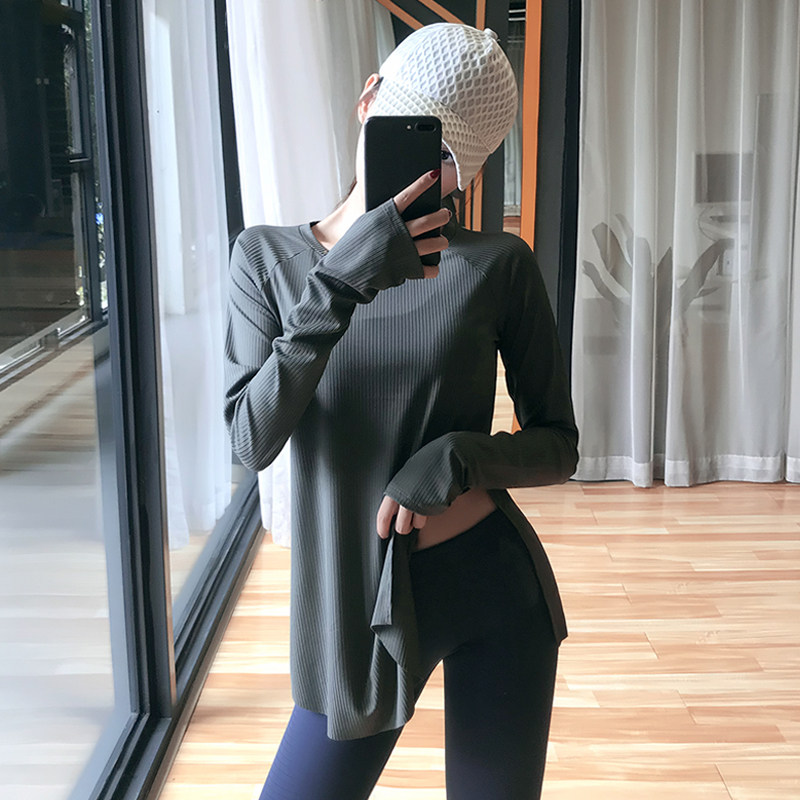 Fitness girl loose running hood cardigan speed dry sports T-shirt display slim net red yoga suit long sleeve large size size blouse new