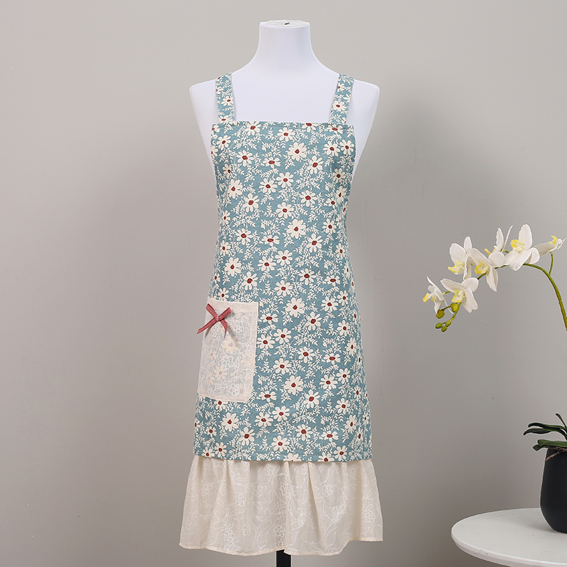 Korean Version Fashion Shatter Apron Bilayer Anti-Oil Waterproof Cute Home Lady Clean Housework Kitchen Apron Field Wind Farm-Taobao