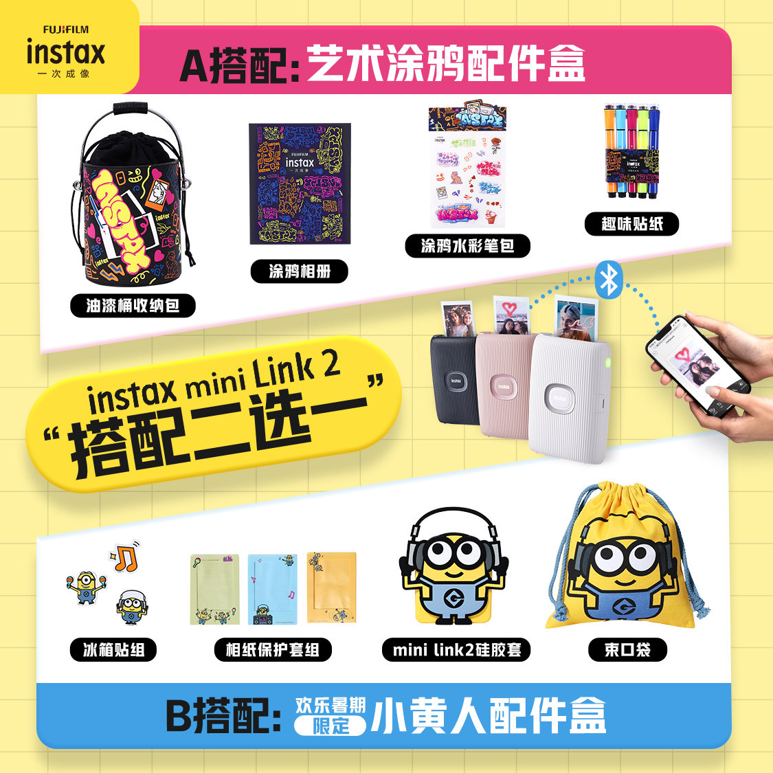 Fuji instax New Pinmini Link mini Link2 Wireless connected mobile phone's photo printer Once imaging Thermal sublimation Mini photo portable pocket photo