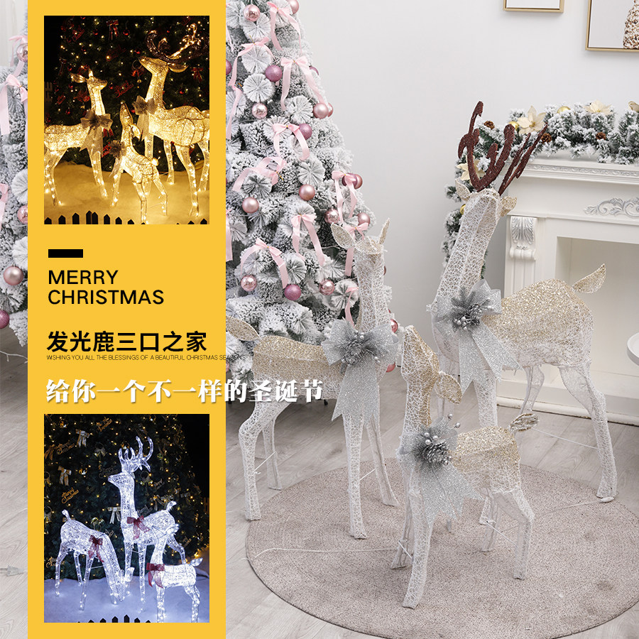 Christmas family of three glowing deer large hotel shopping mall scene window decoration outdoor set props