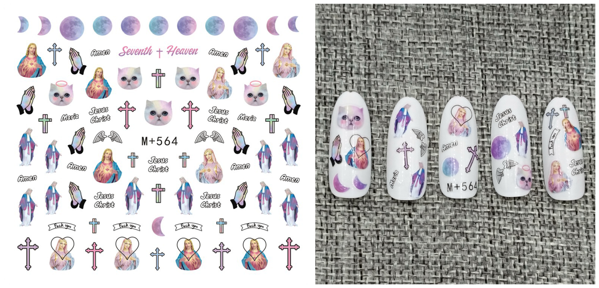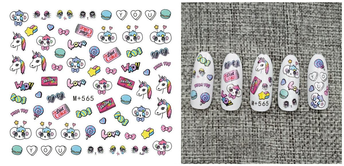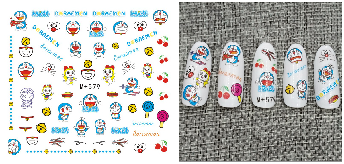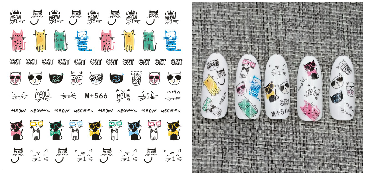 Medecine sticker ultra-thin phototherapy watermarking with floral nail polish glue applied with cute machine cat and dog Little Bear smiling without face