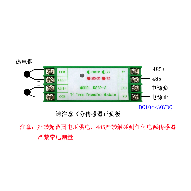 2-channel K-type thermocouple sensor transmitter 2-channel temperature acquisition module RS485 photoelectric isolation RS39-S