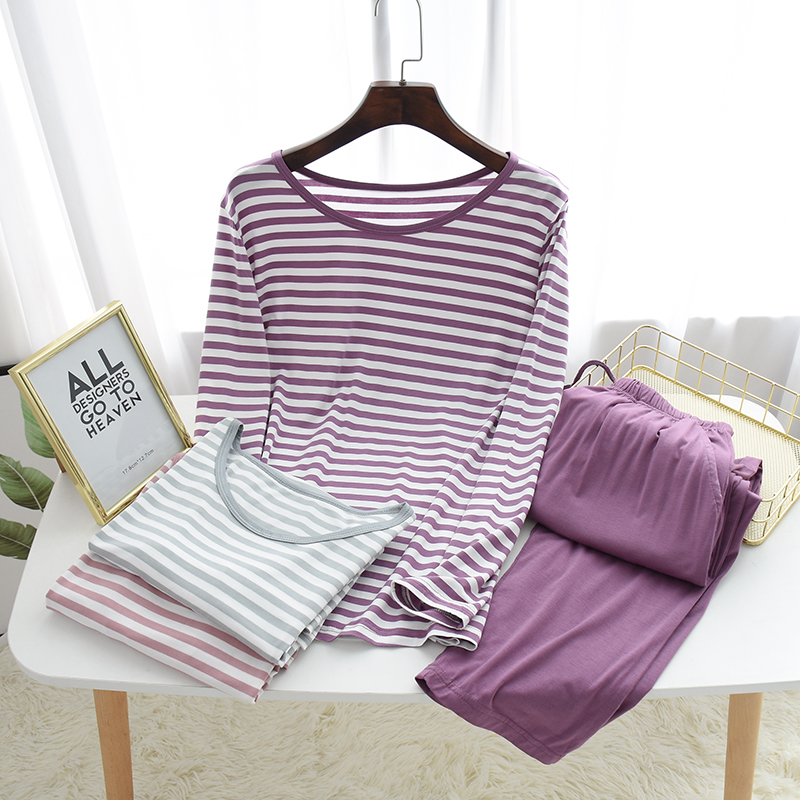 Modale Sleepwear Pants Sets Women's Summer Thin long sleeves Long pants large size Size Casual Loose summer Home clothes Two sets