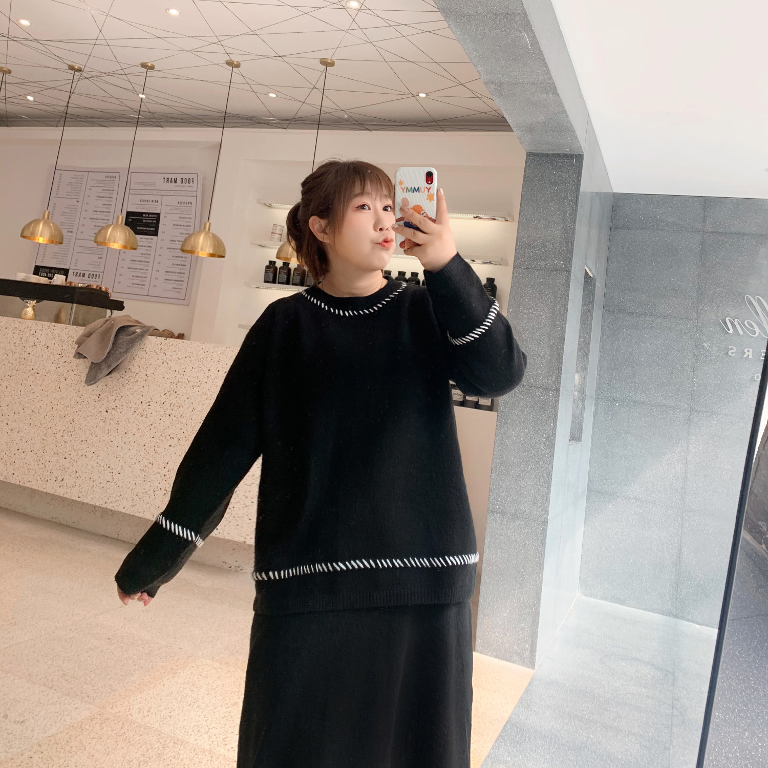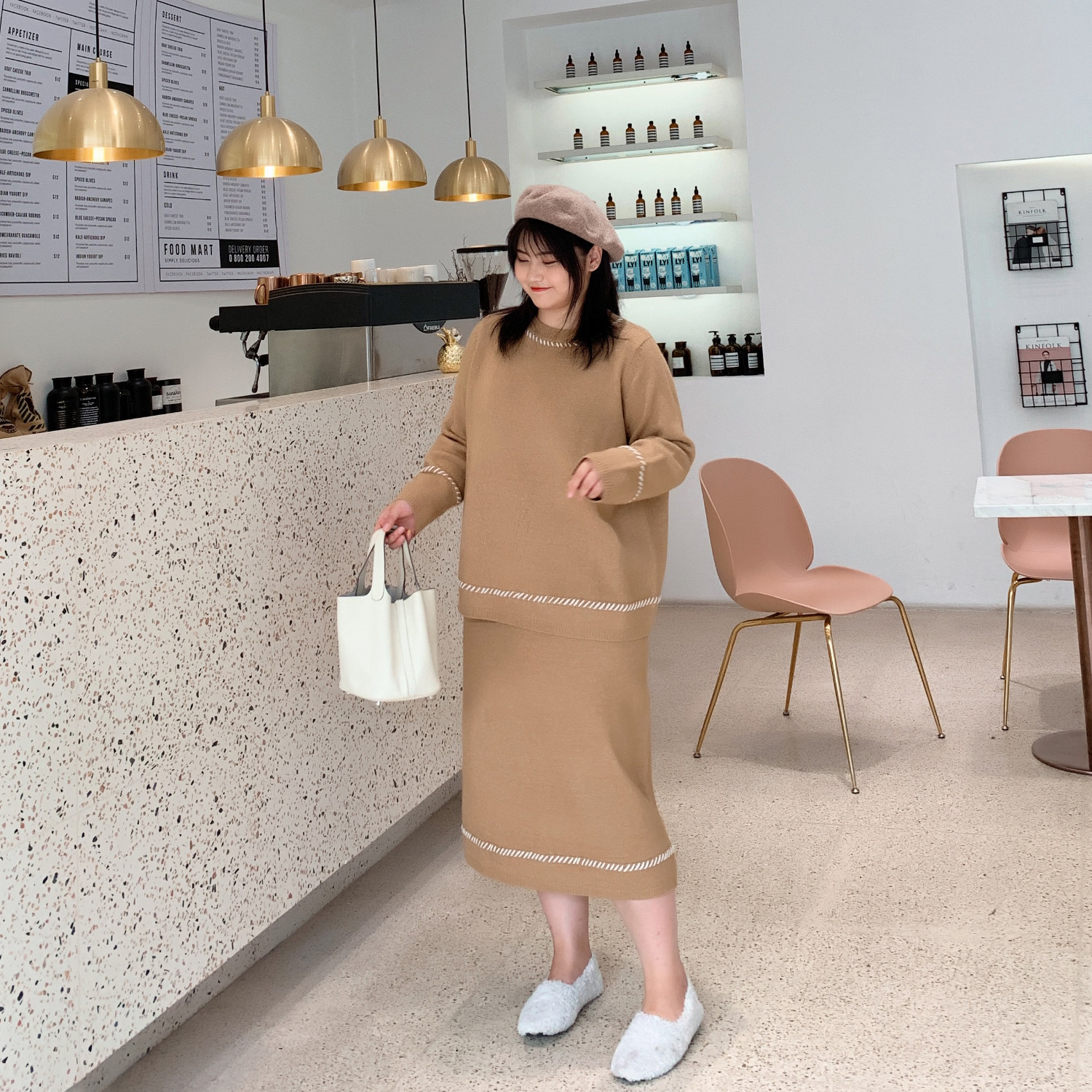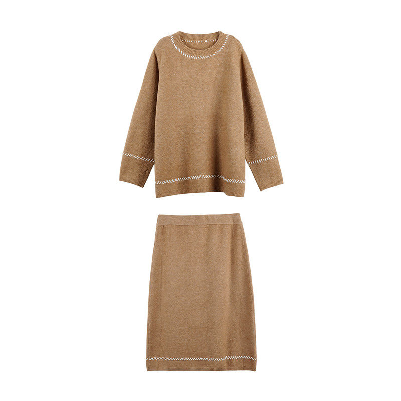 ALIN large size custom knitting sweater half skirt suit female 2019 new shade slim two pieces of winter pie