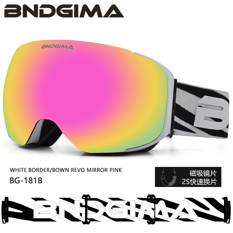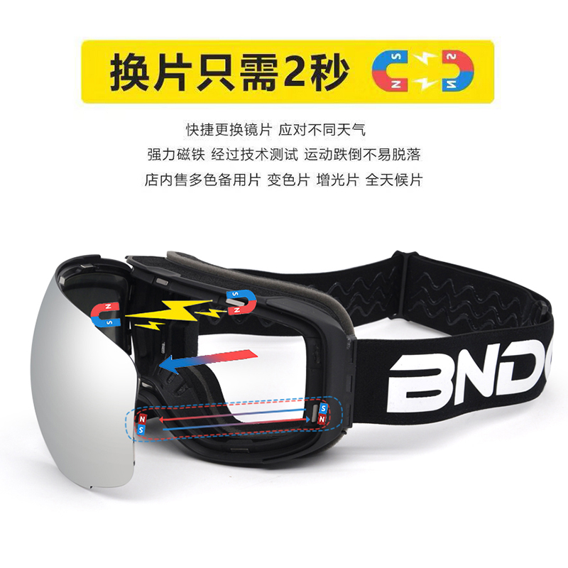 BNDGIMA ski mirror double anti-fog men's and women's large spherical ski glasses equipped with single and double board goggles card close