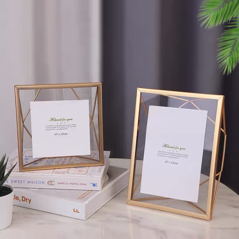 Light Luxurious Metal Photo Frame Swing Table Photo Custom Creativity Ins Wind Transparent Glass Office Swing Piece Square Small