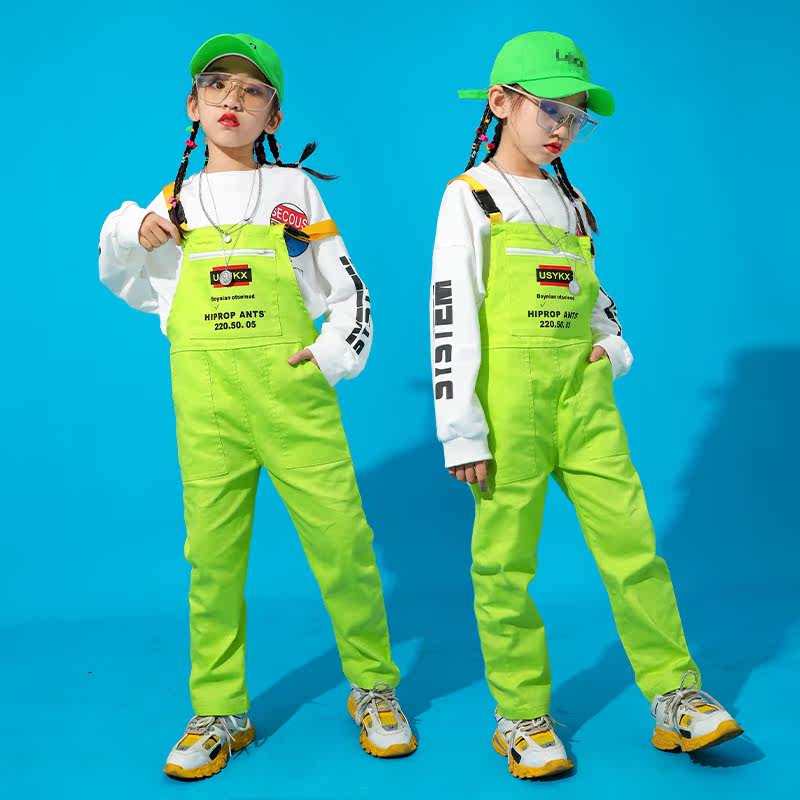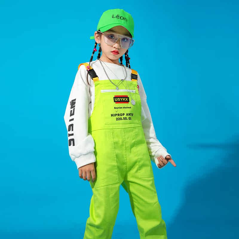 Girls ' hiphop hip-hop hip-hop dance suit Drum set performance suit Children's jazz dance performance suit Baby bag pants tide suit