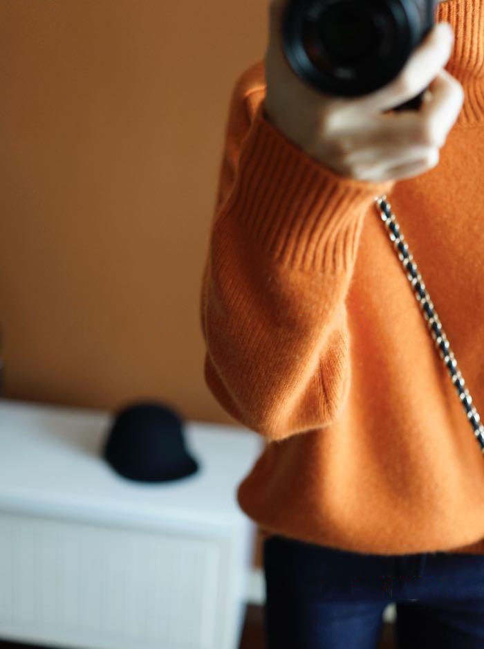 Autumn and winter cashmere sweater women's orange wool sweater women's turtleneck warm pullover sweater loose and lazy knitted bottoming shirt