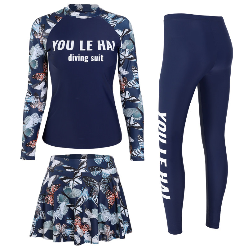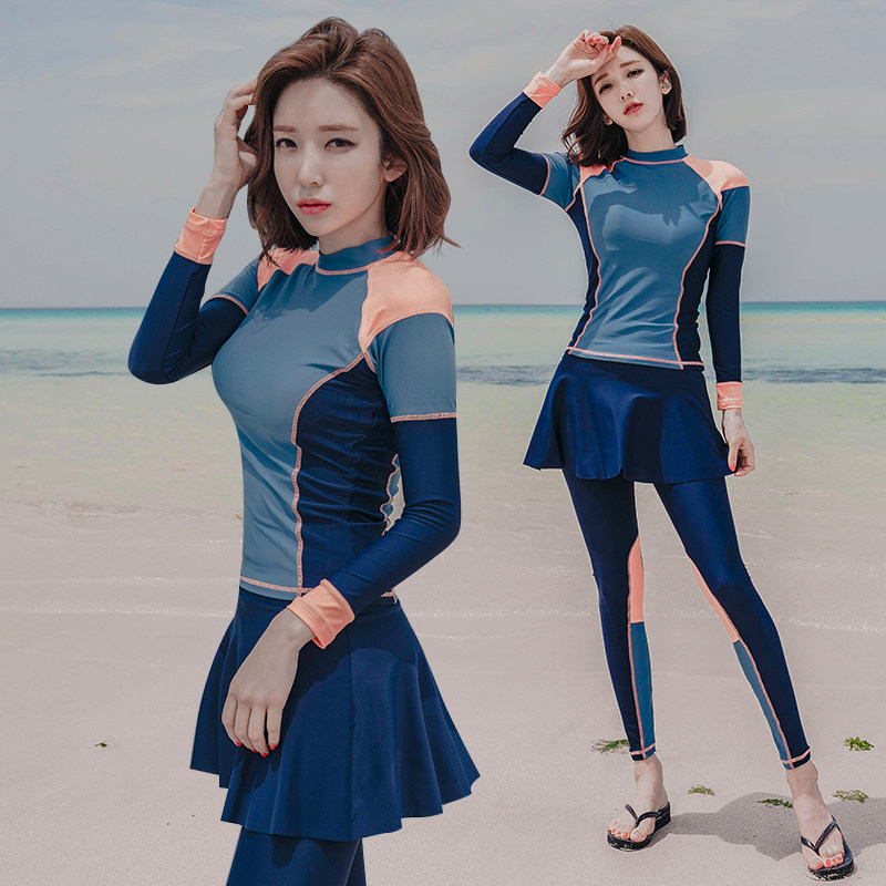 South Korean diving suit female two-piece three sets surf snorkeling with long sleeve sunscreen and jellyfish for a slim dress swimsuit